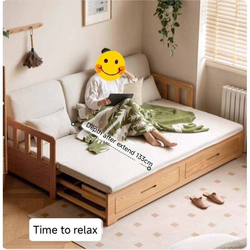 Turn a living room into a bedroom, this Seattle sofa bed make it come true easily. Only 2.99㎡, both beds and sofas are available. Gently pull out and lay the cushion,  the sofa turns into a bed in seconds. Slim armrests makes more seating area. Sleeps two people without any pressure. Invisible double drawers with large storage capacity, can store spare pillows, cushions or blankets, making the living room more tidy.